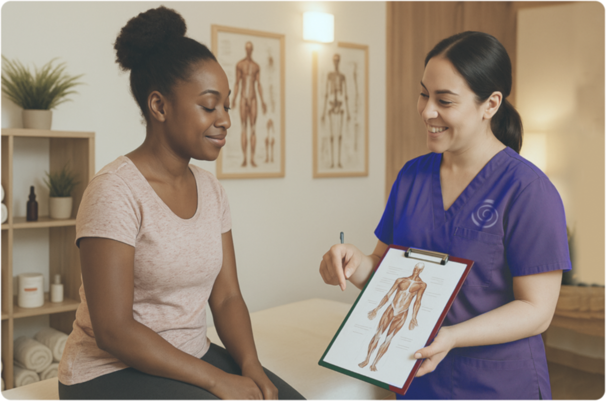Pain relief massage (neuromuscular therapy) focuses on correcting the root causes of pain—such as trigger points and muscle imbalances.