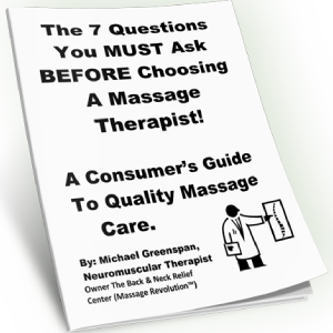 To learn the secrets some massage centers don’t want you to know, simply fill out the form below for a FREE Consumer Awareness Booklet! Fill it out NOW! Armed with this FREE information, you’ll have the ammunition you need to make sure you find a massage therapist that is THE RIGHT ONE for you! Don’t be left in the dark any longer… get your free booklet NOW!